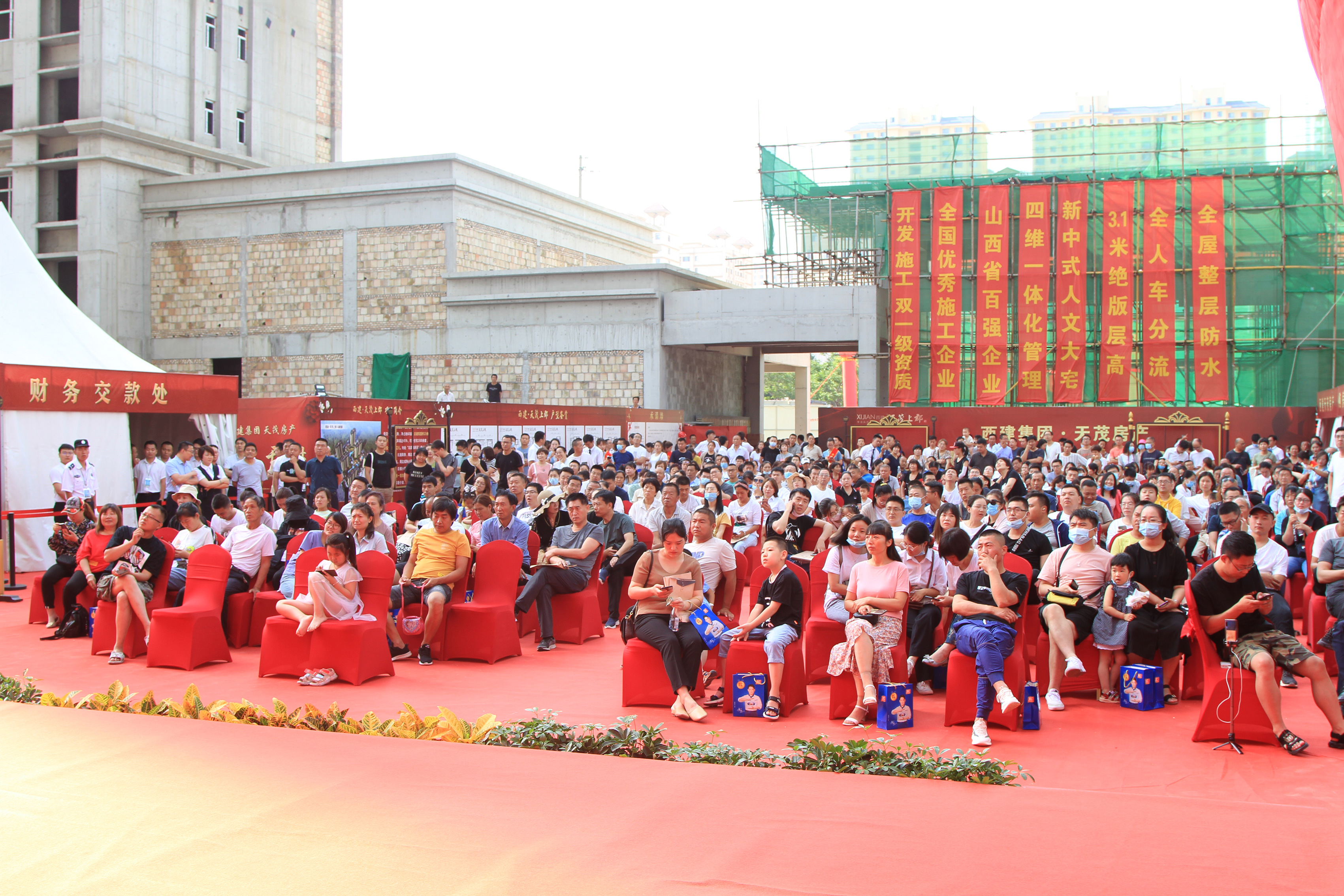 雖然天氣炎熱,但依然抵擋不住大家的熱情,開盤時(shí)間還未到,一支百人服務(wù)大隊(duì)整裝待發(fā),早早守候在天茂上郡中央廣場(chǎng)會(huì)場(chǎng)內(nèi),靜待尊貴的客戶蒞臨。距離開盤還有一個(gè)小時(shí),偌大的會(huì)場(chǎng)早已人聲鼎沸,大家早早趕來生怕與心儀房源失之交臂,眾多購(gòu)房者翹首以盼,焦急地等候開盤儀式,共同見證西建·天茂上郡開盤的盛況。